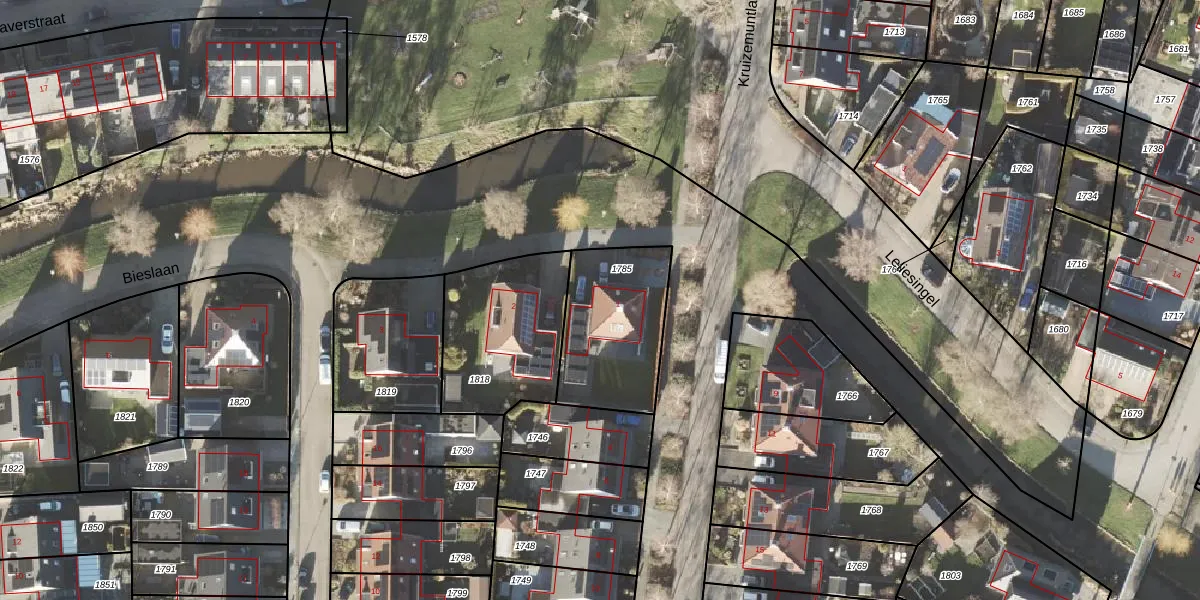 Het perceel waarop Bieslaan 1 staat heeft een oppervlakte van 448 m². Dit is een groot perceel. De perceeloppervlakte wordt geregistreerd door het Kadaster. Gedetailleerde informatie over de maten van dit perceel kunt u vinden in het rapport Kadastrale kaart met maatvoering van Bieslaan 1.