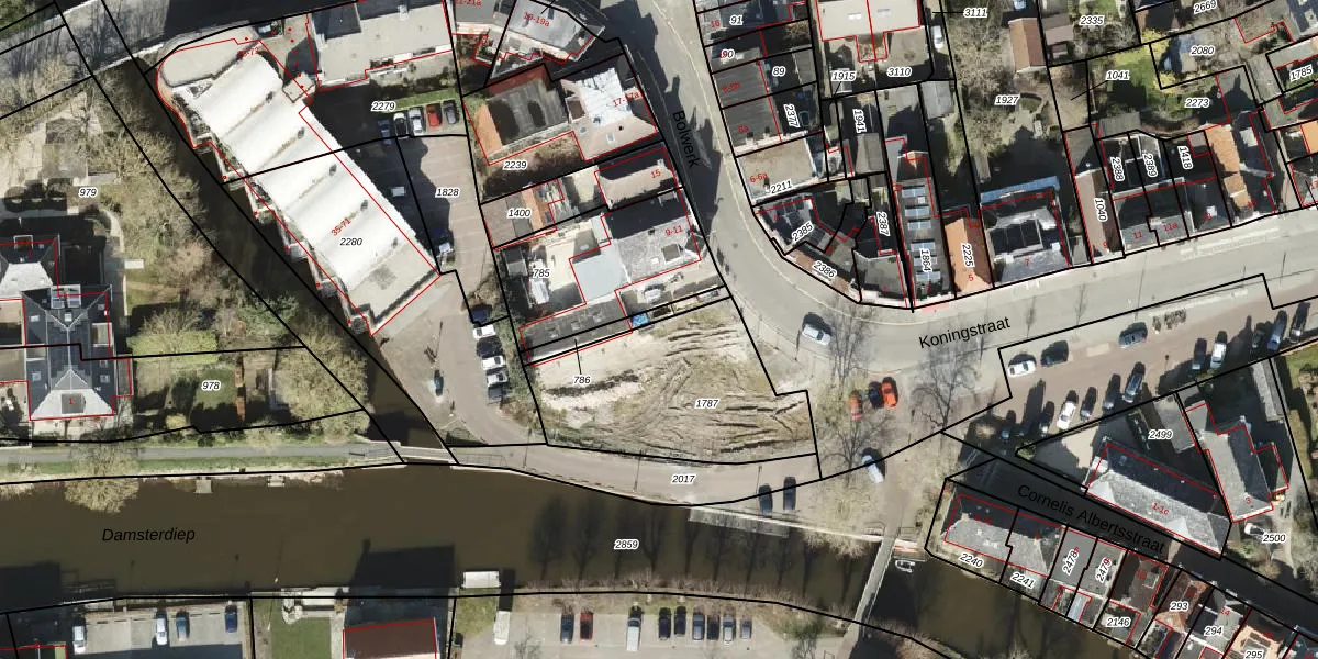 Het perceel waarop Bolwerk 7-c staat heeft een oppervlakte van 701 m². Dit is een groot perceel. De perceeloppervlakte wordt geregistreerd door het Kadaster. Gedetailleerde informatie over de maten van dit perceel kunt u vinden in het rapport Kadastrale kaart met maatvoering van Bolwerk 7-c.