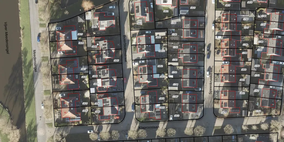 Gebruik de zoekbalk of klik op een perceel voor informatie over de adressen binnen dit perceel.