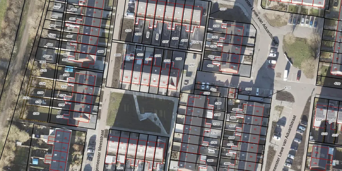 Gebruik de zoekbalk of klik op een perceel voor informatie over de adressen binnen dit perceel.
