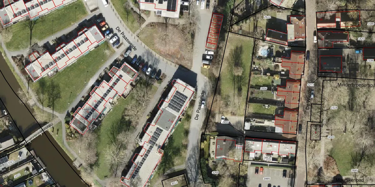 Het perceel waarop De Paasweide 1 staat heeft een oppervlakte van 3,1 ha. Dit is een zeer groot perceel. De perceeloppervlakte wordt geregistreerd door het Kadaster. Gedetailleerde informatie over de maten van dit perceel kunt u vinden in het rapport Kadastrale kaart met maatvoering van De Paasweide 1.