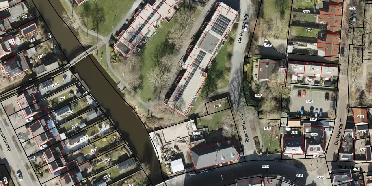 Het perceel waarop De Paasweide 14 staat heeft een oppervlakte van 3,1 ha. Dit is een zeer groot perceel. De perceeloppervlakte wordt geregistreerd door het Kadaster. Gedetailleerde informatie over de maten van dit perceel kunt u vinden in het rapport Kadastrale kaart met maatvoering van De Paasweide 14.