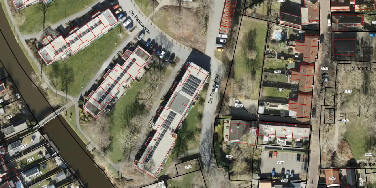 Het perceel waarop De Paasweide 4 staat heeft een oppervlakte van 3,1 ha. Dit is een zeer groot perceel. De perceeloppervlakte wordt geregistreerd door het Kadaster. Gedetailleerde informatie over de maten van dit perceel kunt u vinden in het rapport Kadastrale kaart met maatvoering van De Paasweide 4.