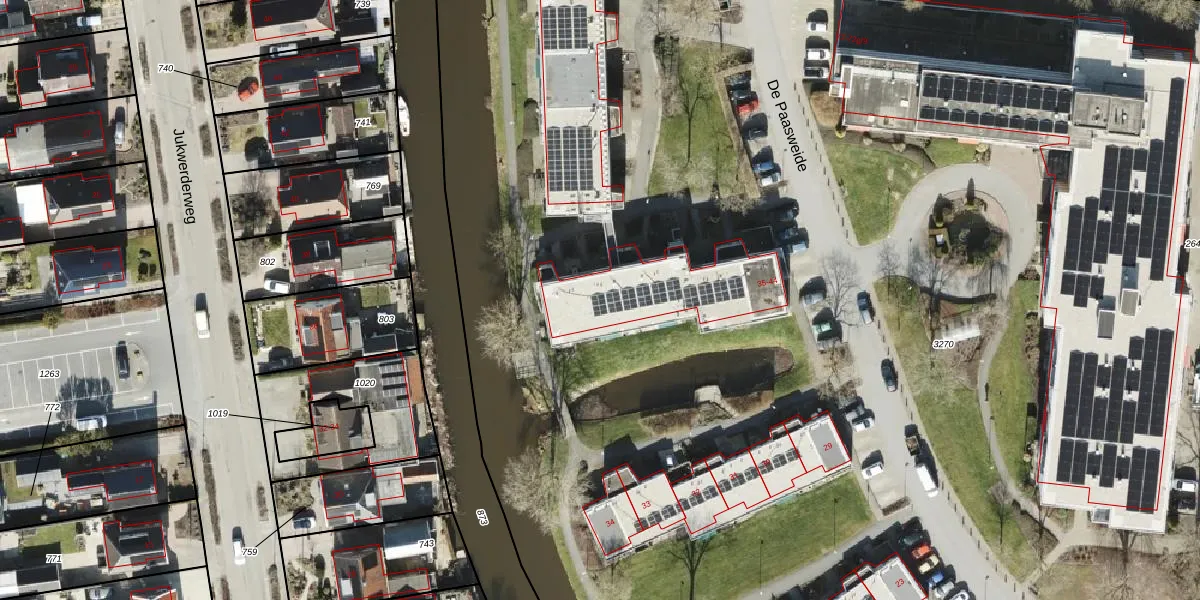 De Paasweide 42 is gelegen op kadastraal perceel APG00D3270. Deze kadastrale aanduiding is uniek en wordt gebruikt door het Kadaster om eigendomsrechten en andere zakelijke rechten vast te leggen. Het perceel maakt onderdeel uit van de kadastrale gemeente Appingedam.