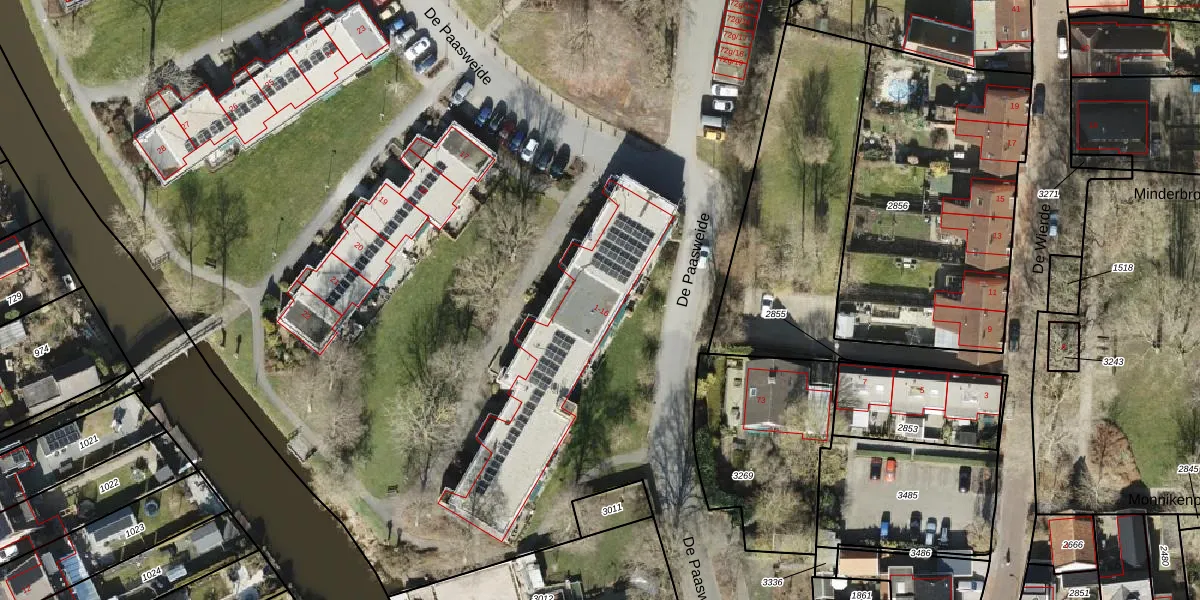 Het perceel waarop De Paasweide 5 staat heeft een oppervlakte van 3,1 ha. Dit is een zeer groot perceel. De perceeloppervlakte wordt geregistreerd door het Kadaster. Gedetailleerde informatie over de maten van dit perceel kunt u vinden in het rapport Kadastrale kaart met maatvoering van De Paasweide 5.