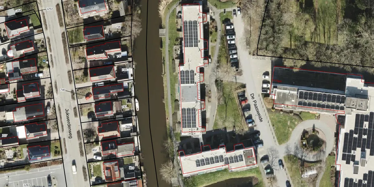 Het perceel waarop De Paasweide 52 staat heeft een oppervlakte van 3,1 ha. Dit is een zeer groot perceel. De perceeloppervlakte wordt geregistreerd door het Kadaster. Gedetailleerde informatie over de maten van dit perceel kunt u vinden in het rapport Kadastrale kaart met maatvoering van De Paasweide 52.