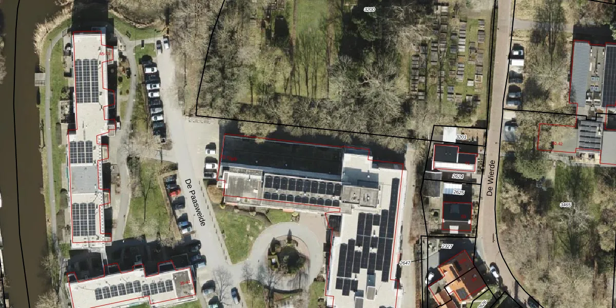 Het perceel waarop De Paasweide 72-203 staat heeft een oppervlakte van 3,1 ha. Dit is een zeer groot perceel. De perceeloppervlakte wordt geregistreerd door het Kadaster. Gedetailleerde informatie over de maten van dit perceel kunt u vinden in het rapport Kadastrale kaart met maatvoering van De Paasweide 72-203.