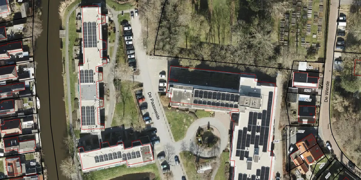 Het perceel waarop De Paasweide 72-211 staat heeft een oppervlakte van 3,1 ha. Dit is een zeer groot perceel. De perceeloppervlakte wordt geregistreerd door het Kadaster. Gedetailleerde informatie over de maten van dit perceel kunt u vinden in het rapport Kadastrale kaart met maatvoering van De Paasweide 72-211.