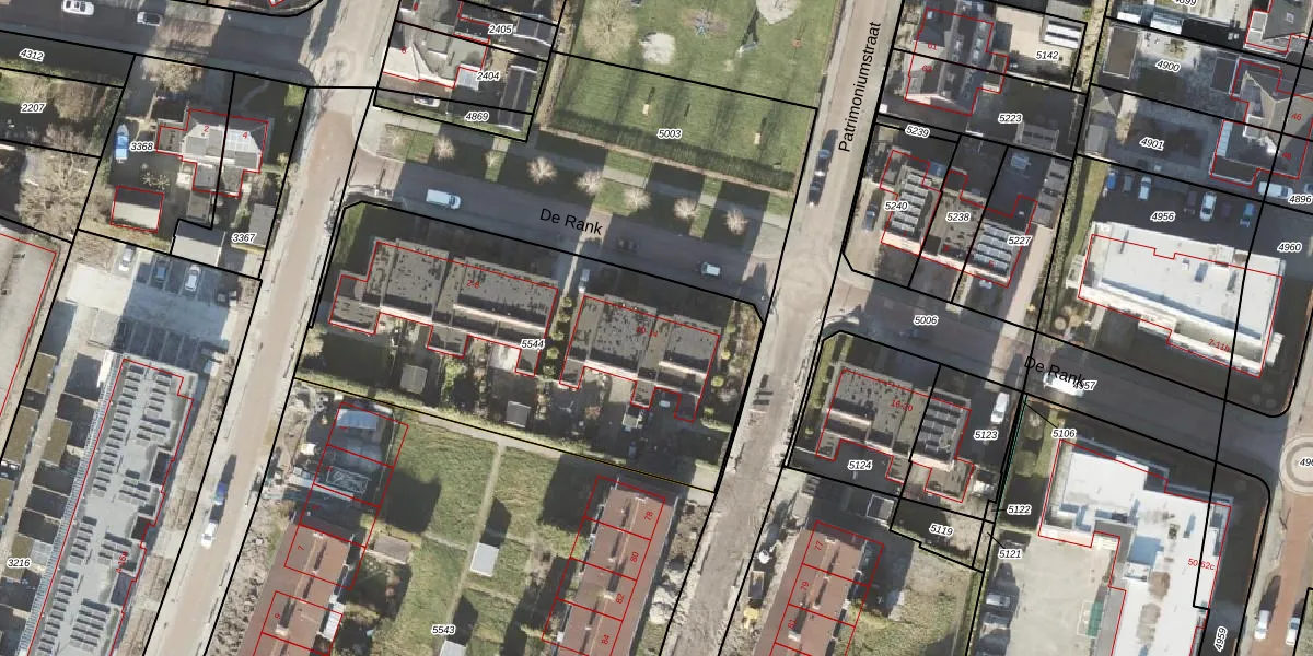 Het perceel waarop De Rank 12 staat heeft een oppervlakte van 1931 m². Dit is een zeer groot perceel. De perceeloppervlakte wordt geregistreerd door het Kadaster. Gedetailleerde informatie over de maten van dit perceel kunt u vinden in het rapport Kadastrale kaart met maatvoering van De Rank 12.