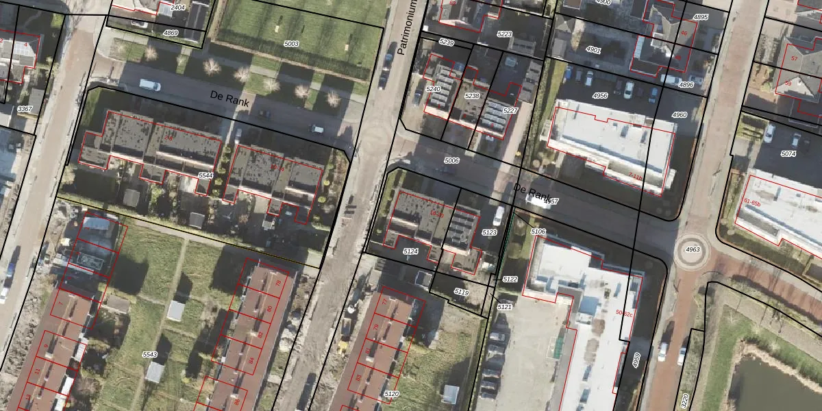 Het perceel waarop De Rank 16 staat heeft een oppervlakte van 387 m². Dit is een groot perceel. De perceeloppervlakte wordt geregistreerd door het Kadaster. Gedetailleerde informatie over de maten van dit perceel kunt u vinden in het rapport Kadastrale kaart met maatvoering van De Rank 16.