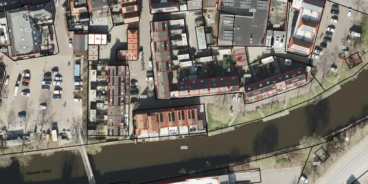 de Smederij 17 is gelegen op kadastraal perceel APG00D3216. Deze kadastrale aanduiding is uniek en wordt gebruikt door het Kadaster om eigendomsrechten en andere zakelijke rechten vast te leggen. Het perceel maakt onderdeel uit van de kadastrale gemeente Appingedam.