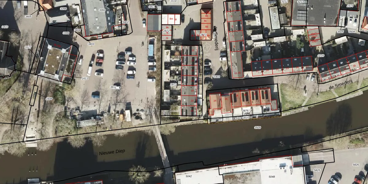 de Smederij 18 is gelegen op kadastraal perceel APG00D2873. Deze kadastrale aanduiding is uniek en wordt gebruikt door het Kadaster om eigendomsrechten en andere zakelijke rechten vast te leggen. Het perceel maakt onderdeel uit van de kadastrale gemeente Appingedam.