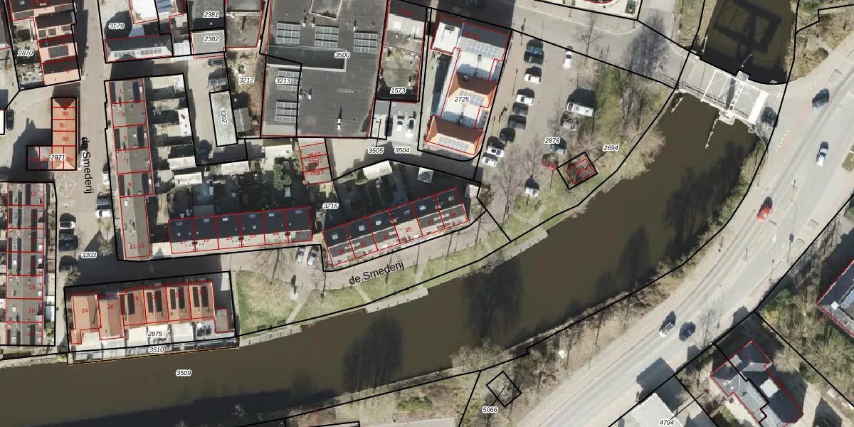 de Smederij 37 is gelegen op kadastraal perceel APG00D3216. Deze kadastrale aanduiding is uniek en wordt gebruikt door het Kadaster om eigendomsrechten en andere zakelijke rechten vast te leggen. Het perceel maakt onderdeel uit van de kadastrale gemeente Appingedam.