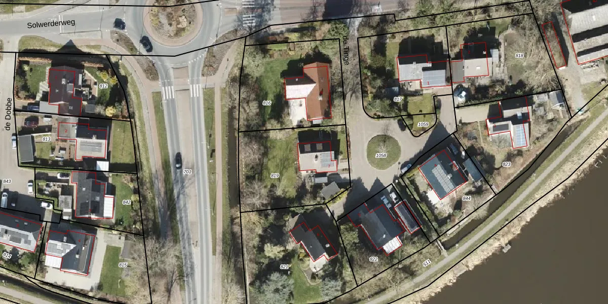 Gebruik de zoekbalk of klik op een perceel voor informatie over de adressen binnen dit perceel.