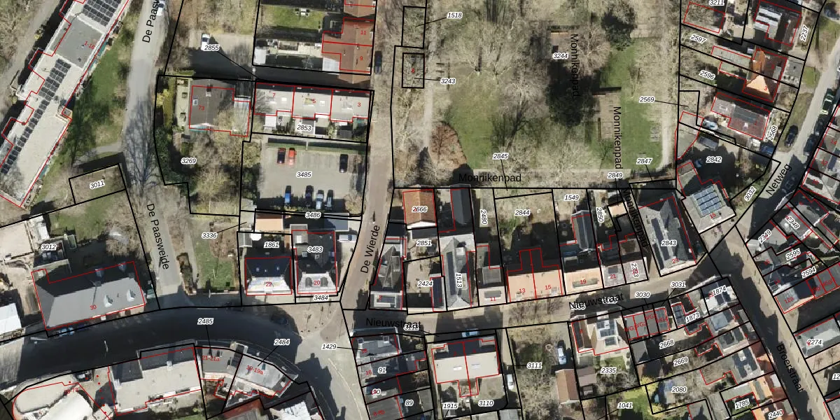 Gebruik de zoekbalk of klik op een perceel voor informatie over de adressen binnen dit perceel.