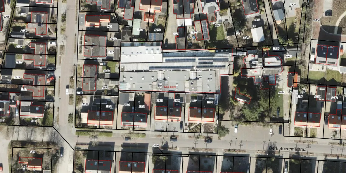 Het perceel waarop Derk Boeremastraat 50-g-33 staat heeft een oppervlakte van 2429 m². Dit is een zeer groot perceel. De perceeloppervlakte wordt geregistreerd door het Kadaster. Gedetailleerde informatie over de maten van dit perceel kunt u vinden in het rapport Kadastrale kaart met maatvoering van Derk Boeremastraat 50-g-33.