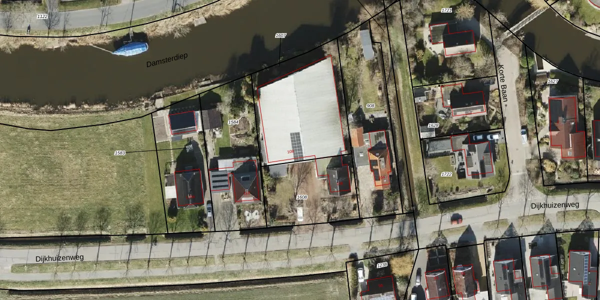 Dijkhuizenweg 108 is gelegen op kadastraal perceel APG00H1607. Deze kadastrale aanduiding is uniek en wordt gebruikt door het Kadaster om eigendomsrechten en andere zakelijke rechten vast te leggen. Het perceel maakt onderdeel uit van de kadastrale gemeente Appingedam.