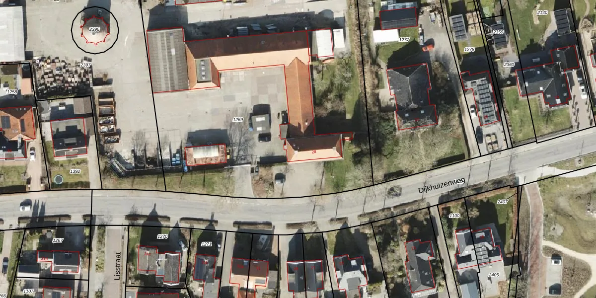 Het perceel waarop Dijkhuizenweg 28 staat heeft een oppervlakte van 5358 m². Dit is een zeer groot perceel. De perceeloppervlakte wordt geregistreerd door het Kadaster. Gedetailleerde informatie over de maten van dit perceel kunt u vinden in het rapport Kadastrale kaart met maatvoering van Dijkhuizenweg 28.