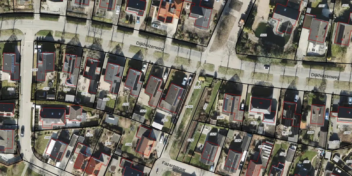 Het perceel waarop Dijkhuizenweg 75 staat heeft een oppervlakte van 447 m². Dit is een groot perceel. De perceeloppervlakte wordt geregistreerd door het Kadaster. Gedetailleerde informatie over de maten van dit perceel kunt u vinden in het rapport Kadastrale kaart met maatvoering van Dijkhuizenweg 75.
