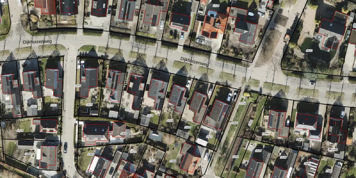 Gebruik de zoekbalk of klik op een perceel voor informatie over de adressen binnen dit perceel.