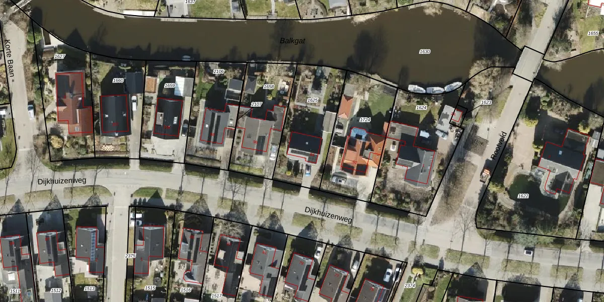 Gebruik de zoekbalk of klik op een perceel voor informatie over de adressen binnen dit perceel.