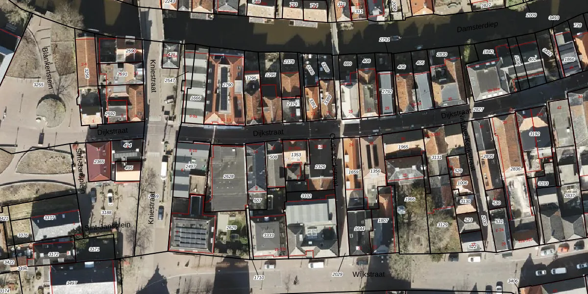 Dijkstraat 20 is gelegen op kadastraal perceel APG00D1353. Deze kadastrale aanduiding is uniek en wordt gebruikt door het Kadaster om eigendomsrechten en andere zakelijke rechten vast te leggen. Het perceel maakt onderdeel uit van de kadastrale gemeente Appingedam.