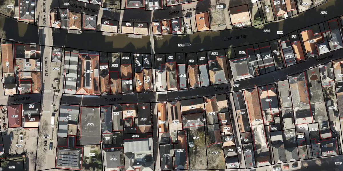 Gebruik de zoekbalk of klik op een perceel voor informatie over de adressen binnen dit perceel.