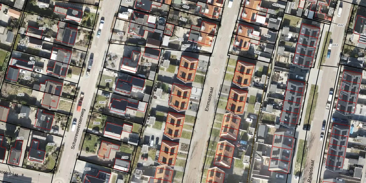 Het perceel waarop Emmastraat 16 staat heeft een oppervlakte van 5190 m². Dit is een zeer groot perceel. De perceeloppervlakte wordt geregistreerd door het Kadaster. Gedetailleerde informatie over de maten van dit perceel kunt u vinden in het rapport Kadastrale kaart met maatvoering van Emmastraat 16.