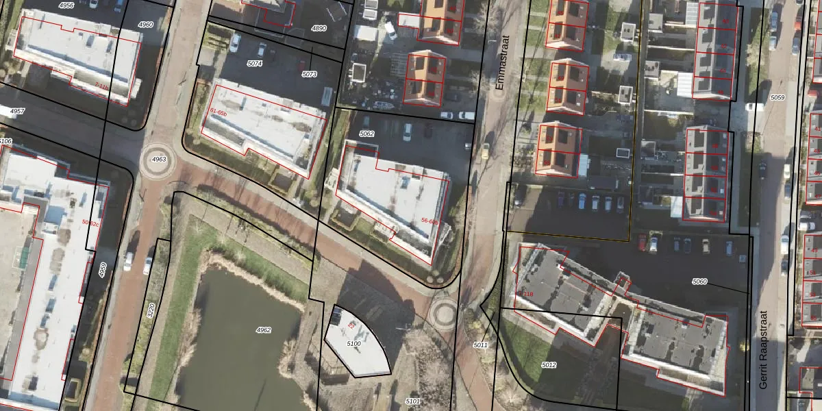 Emmastraat 58-b is gelegen op kadastraal perceel APG00G5062. Deze kadastrale aanduiding is uniek en wordt gebruikt door het Kadaster om eigendomsrechten en andere zakelijke rechten vast te leggen. Het perceel maakt onderdeel uit van de kadastrale gemeente Appingedam.