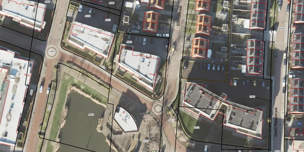 Emmastraat 60-b is gelegen op kadastraal perceel APG00G5062. Deze kadastrale aanduiding is uniek en wordt gebruikt door het Kadaster om eigendomsrechten en andere zakelijke rechten vast te leggen. Het perceel maakt onderdeel uit van de kadastrale gemeente Appingedam.