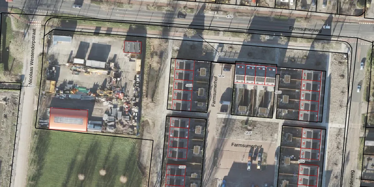 Het perceel waarop Farmsumerhof 21 staat heeft een oppervlakte van 589 m². Dit is een groot perceel. De perceeloppervlakte wordt geregistreerd door het Kadaster. Gedetailleerde informatie over de maten van dit perceel kunt u vinden in het rapport Kadastrale kaart met maatvoering van Farmsumerhof 21.