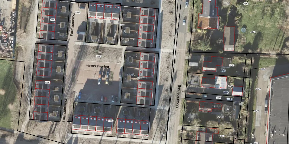 Het perceel waarop Farmsumerhof 51 staat heeft een oppervlakte van 848 m². Dit is een groot perceel. De perceeloppervlakte wordt geregistreerd door het Kadaster. Gedetailleerde informatie over de maten van dit perceel kunt u vinden in het rapport Kadastrale kaart met maatvoering van Farmsumerhof 51.