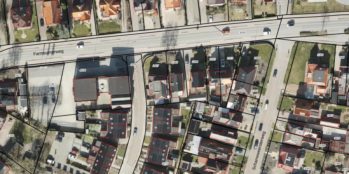 Gebruik de zoekbalk of klik op een perceel voor informatie over de adressen binnen dit perceel.