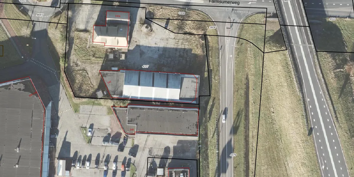 Het perceel waarop Farmsumerweg 142-c staat heeft een oppervlakte van 3760 m². Dit is een zeer groot perceel. De perceeloppervlakte wordt geregistreerd door het Kadaster. Gedetailleerde informatie over de maten van dit perceel kunt u vinden in het rapport Kadastrale kaart met maatvoering van Farmsumerweg 142-c.