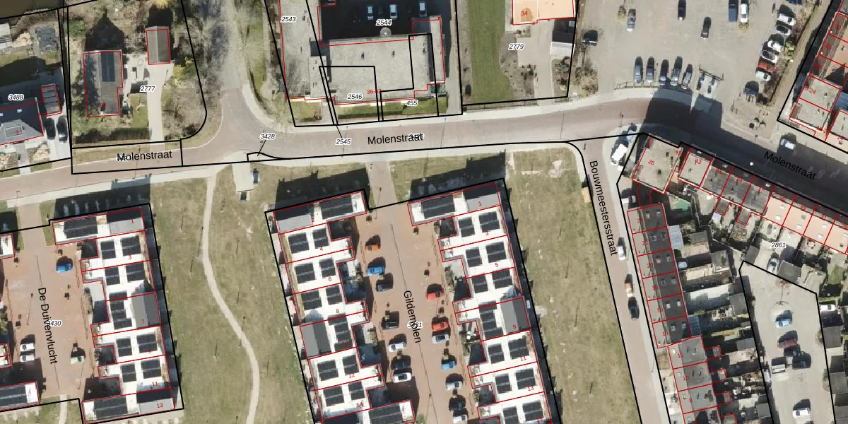 Gildemolen 1 is gelegen op kadastraal perceel APG00D3431. Deze kadastrale aanduiding is uniek en wordt gebruikt door het Kadaster om eigendomsrechten en andere zakelijke rechten vast te leggen. Het perceel maakt onderdeel uit van de kadastrale gemeente Appingedam.