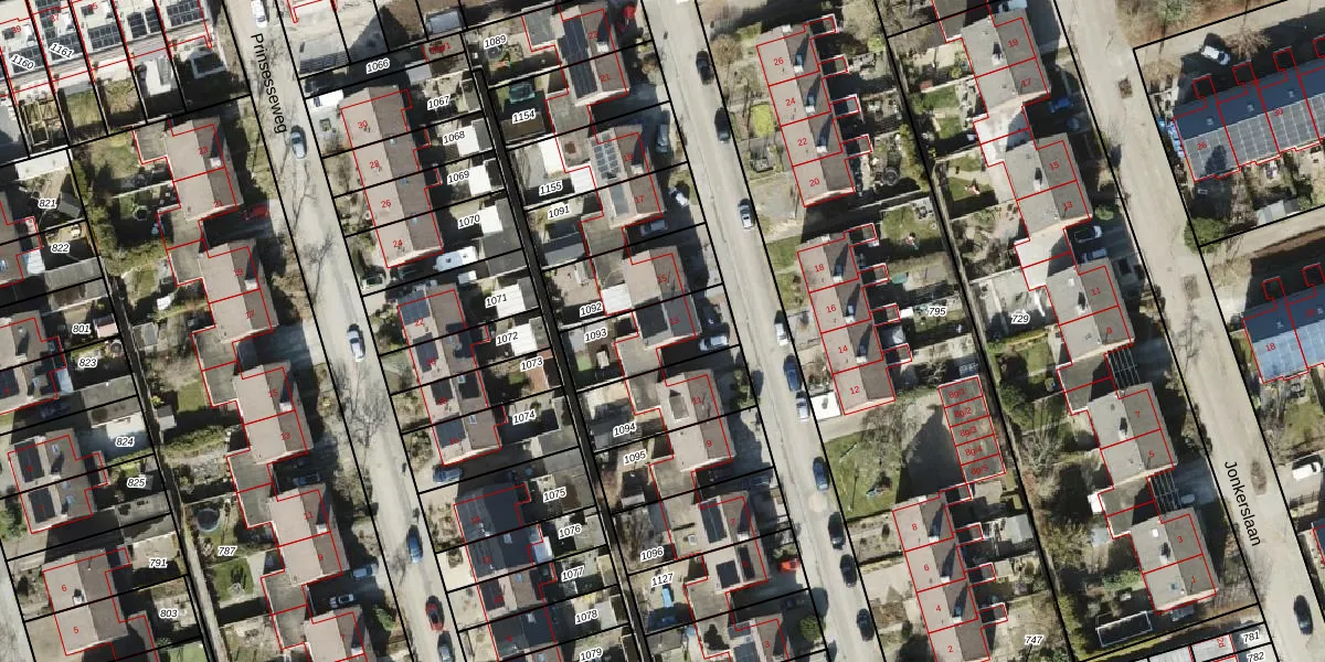 Gebruik de zoekbalk of klik op een perceel voor informatie over de adressen binnen dit perceel.