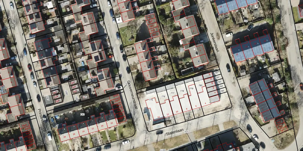 Het perceel waarop Gouverneurstraat 2 staat heeft een oppervlakte van 3145 m². Dit is een zeer groot perceel. De perceeloppervlakte wordt geregistreerd door het Kadaster. Gedetailleerde informatie over de maten van dit perceel kunt u vinden in het rapport Kadastrale kaart met maatvoering van Gouverneurstraat 2.
