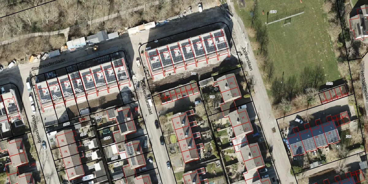 Het perceel waarop Gouverneurstraat 26-g-5 staat heeft een oppervlakte van 3145 m². Dit is een zeer groot perceel. De perceeloppervlakte wordt geregistreerd door het Kadaster. Gedetailleerde informatie over de maten van dit perceel kunt u vinden in het rapport Kadastrale kaart met maatvoering van Gouverneurstraat 26-g-5.