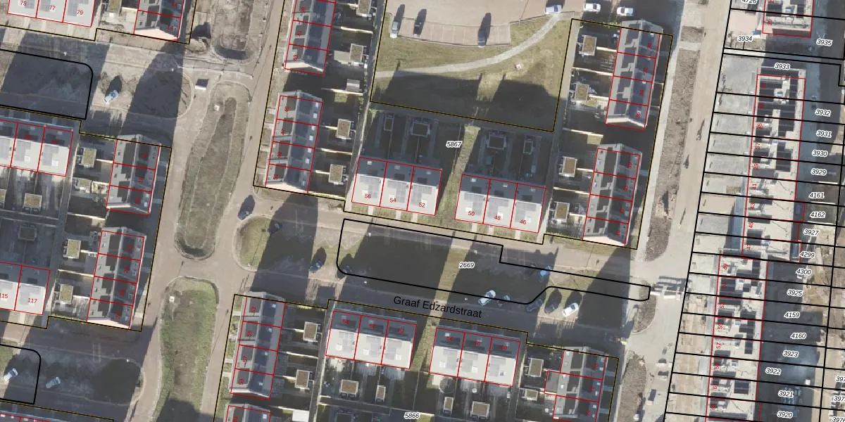 Graaf Edzardstraat 52 is gelegen op kadastraal perceel APG00G5867. Deze kadastrale aanduiding is uniek en wordt gebruikt door het Kadaster om eigendomsrechten en andere zakelijke rechten vast te leggen. Het perceel maakt onderdeel uit van de kadastrale gemeente Appingedam.