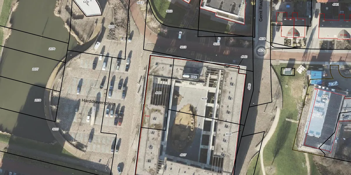 Harddraversplein 23 is gelegen op kadastraal perceel APG00G4939. Deze kadastrale aanduiding is uniek en wordt gebruikt door het Kadaster om eigendomsrechten en andere zakelijke rechten vast te leggen. Het perceel maakt onderdeel uit van de kadastrale gemeente Appingedam.