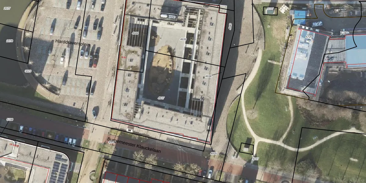 Het perceel waarop Harddraversplein 87 staat heeft een oppervlakte van 2162 m². Dit is een zeer groot perceel. De perceeloppervlakte wordt geregistreerd door het Kadaster. Gedetailleerde informatie over de maten van dit perceel kunt u vinden in het rapport Kadastrale kaart met maatvoering van Harddraversplein 87.