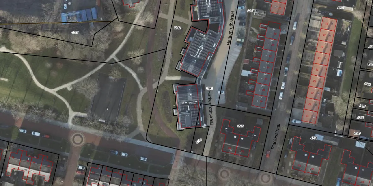 Harkenrothstraat 15 is gelegen op kadastraal perceel APG00G5841. Deze kadastrale aanduiding is uniek en wordt gebruikt door het Kadaster om eigendomsrechten en andere zakelijke rechten vast te leggen. Het perceel maakt onderdeel uit van de kadastrale gemeente Appingedam.