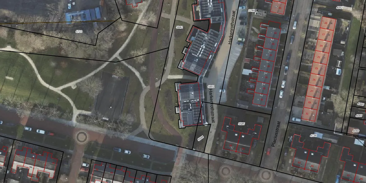 Harkenrothstraat 25 is gelegen op kadastraal perceel APG00G5841. Deze kadastrale aanduiding is uniek en wordt gebruikt door het Kadaster om eigendomsrechten en andere zakelijke rechten vast te leggen. Het perceel maakt onderdeel uit van de kadastrale gemeente Appingedam.