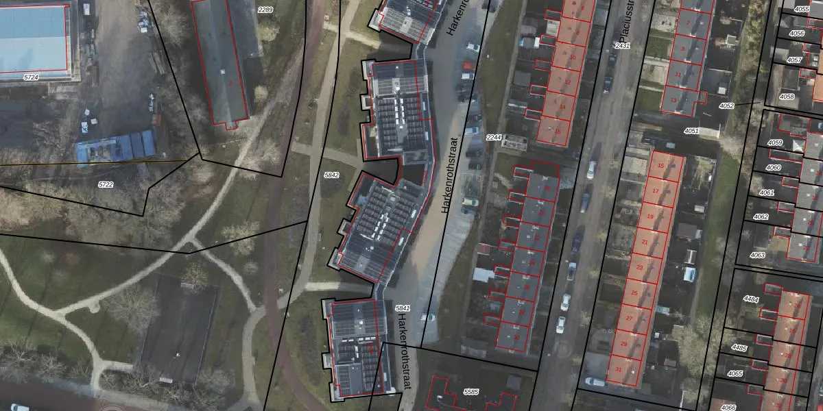 Het perceel waarop Harkenrothstraat 28-a staat heeft een oppervlakte van 2505 m². Dit is een zeer groot perceel. De perceeloppervlakte wordt geregistreerd door het Kadaster. Gedetailleerde informatie over de maten van dit perceel kunt u vinden in het rapport Kadastrale kaart met maatvoering van Harkenrothstraat 28-a.