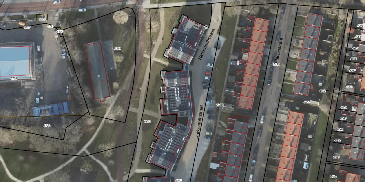 Het perceel waarop Harkenrothstraat 8 staat heeft een oppervlakte van 2505 m². Dit is een zeer groot perceel. De perceeloppervlakte wordt geregistreerd door het Kadaster. Gedetailleerde informatie over de maten van dit perceel kunt u vinden in het rapport Kadastrale kaart met maatvoering van Harkenrothstraat 8.