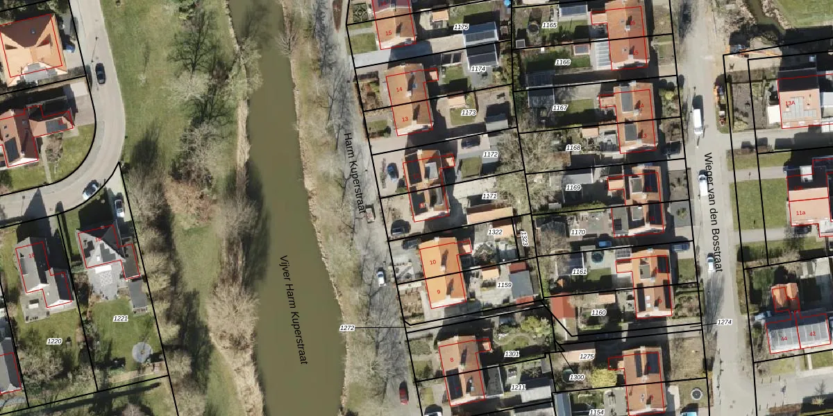 Gebruik de zoekbalk of klik op een perceel voor informatie over de adressen binnen dit perceel.