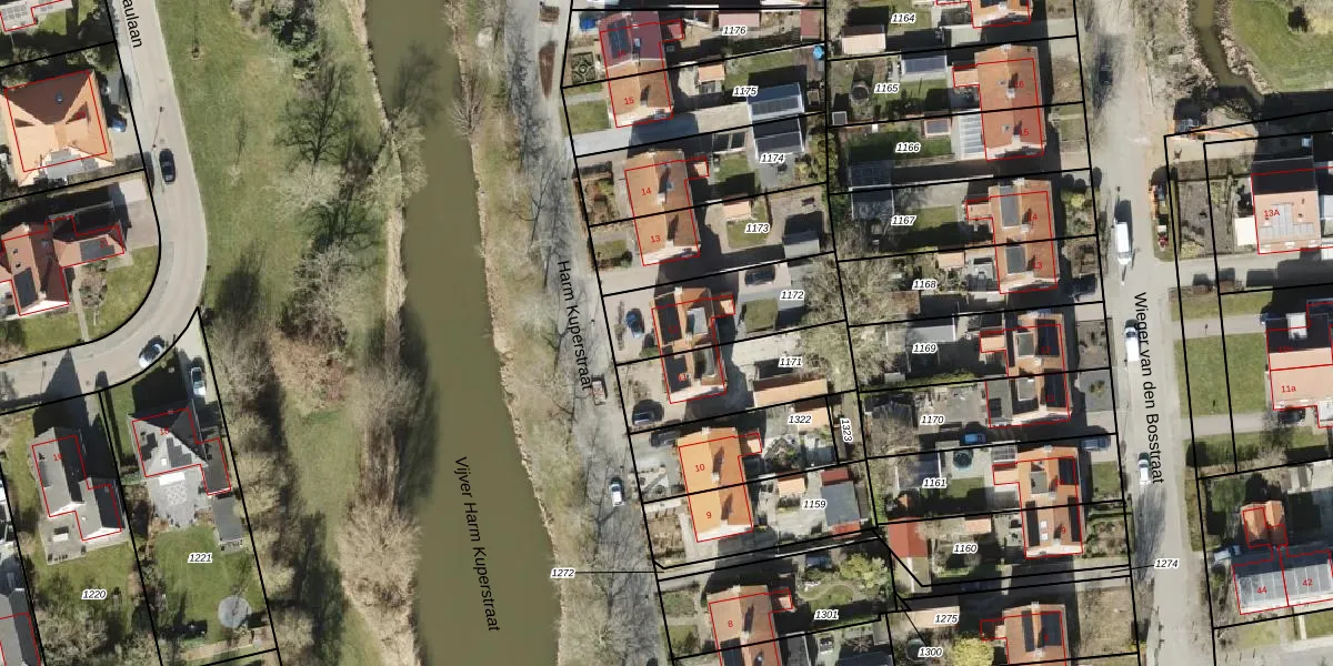 Gebruik de zoekbalk of klik op een perceel voor informatie over de adressen binnen dit perceel.