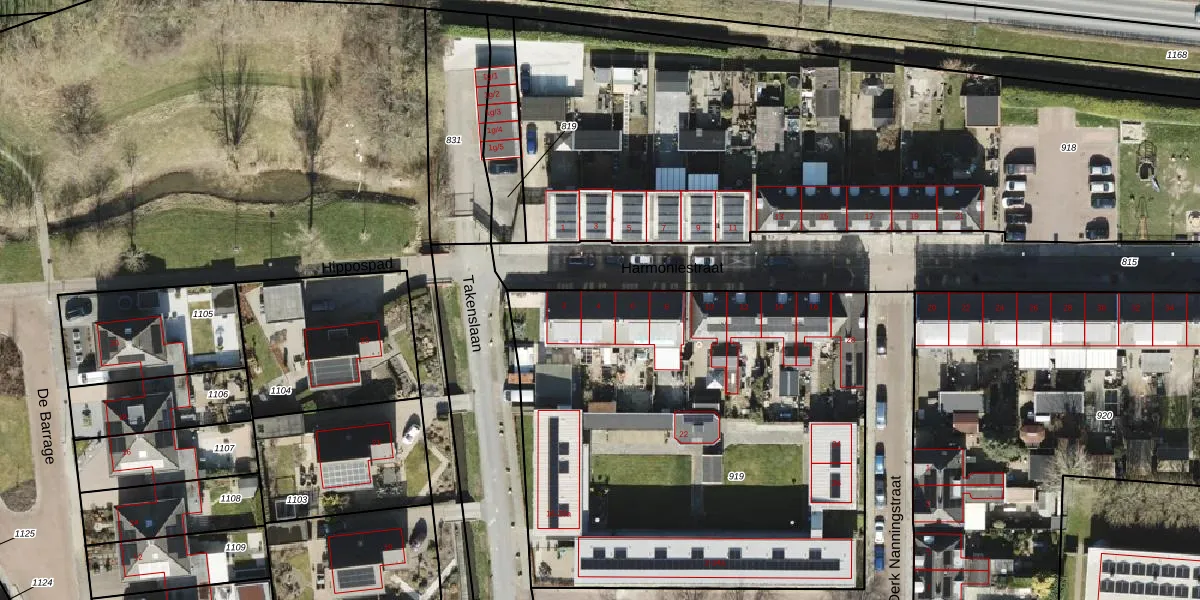 Het perceel waarop Harmoniestraat 4 staat heeft een oppervlakte van 2827 m². Dit is een zeer groot perceel. De perceeloppervlakte wordt geregistreerd door het Kadaster. Gedetailleerde informatie over de maten van dit perceel kunt u vinden in het rapport Kadastrale kaart met maatvoering van Harmoniestraat 4.