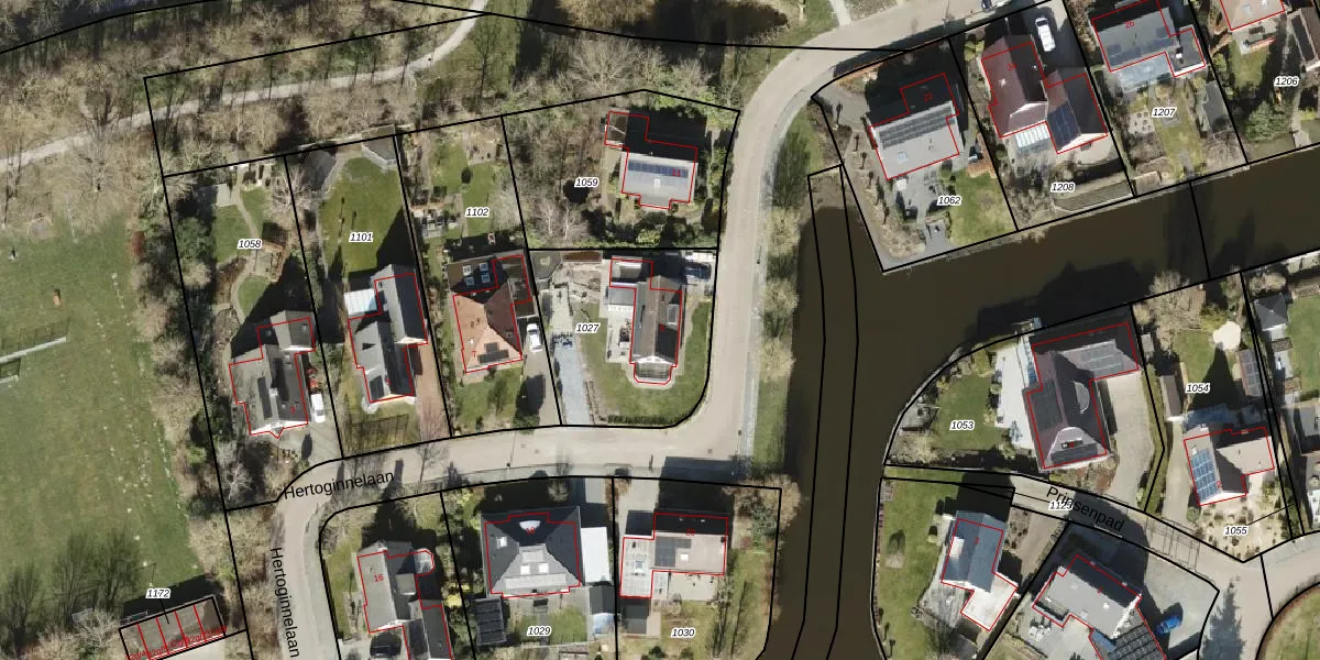 Gebruik de zoekbalk of klik op een perceel voor informatie over de adressen binnen dit perceel.