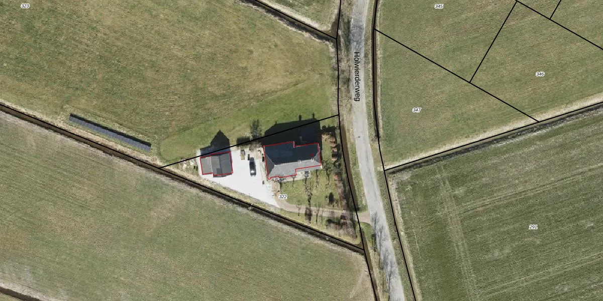 Holwierderweg 5 is gelegen op kadastraal perceel APG00L322. Deze kadastrale aanduiding is uniek en wordt gebruikt door het Kadaster om eigendomsrechten en andere zakelijke rechten vast te leggen. Het perceel maakt onderdeel uit van de kadastrale gemeente Appingedam.